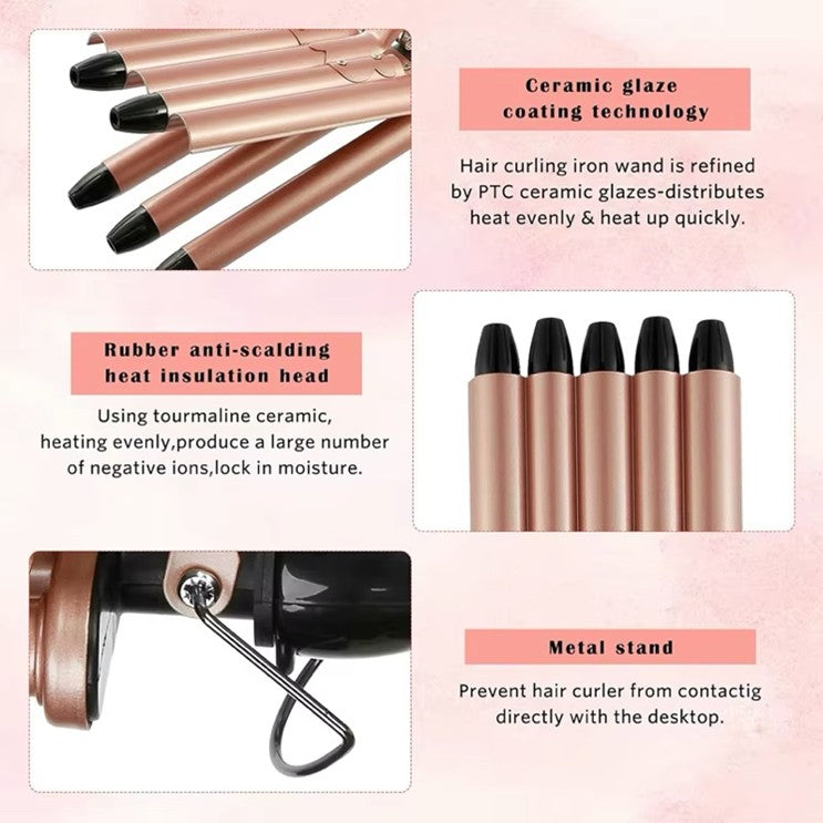 This all-in-one device offers a 3-in-1 function, combining a hair waver and curling iron in one product. With three barrels, it creates stunning, long-lasting waves and curls effortlessly. Experience 3 times the styling power in one convenient tool.